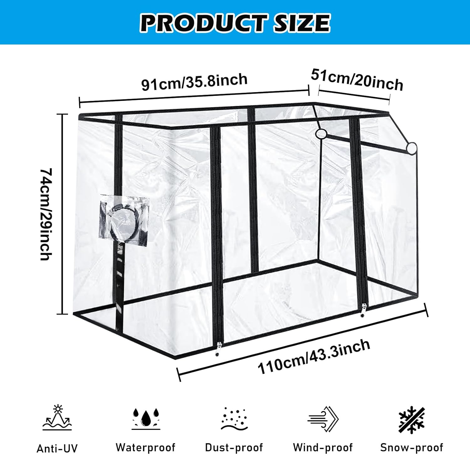 Der Regenschutz überzeugt durch seine vielseitige Schutzfunktion gegenüber allen Witterungseinflüssen. Das dichte EVA-Material bildet eine wasserdichte Barriere, die auch bei starkem Regen kein Durchsickern zulässt. Gleichzeitig ist es windundurchlässig, sodass bei stürmischen Bedingungen kein eisiger Luftzug ins Innere gelangt.