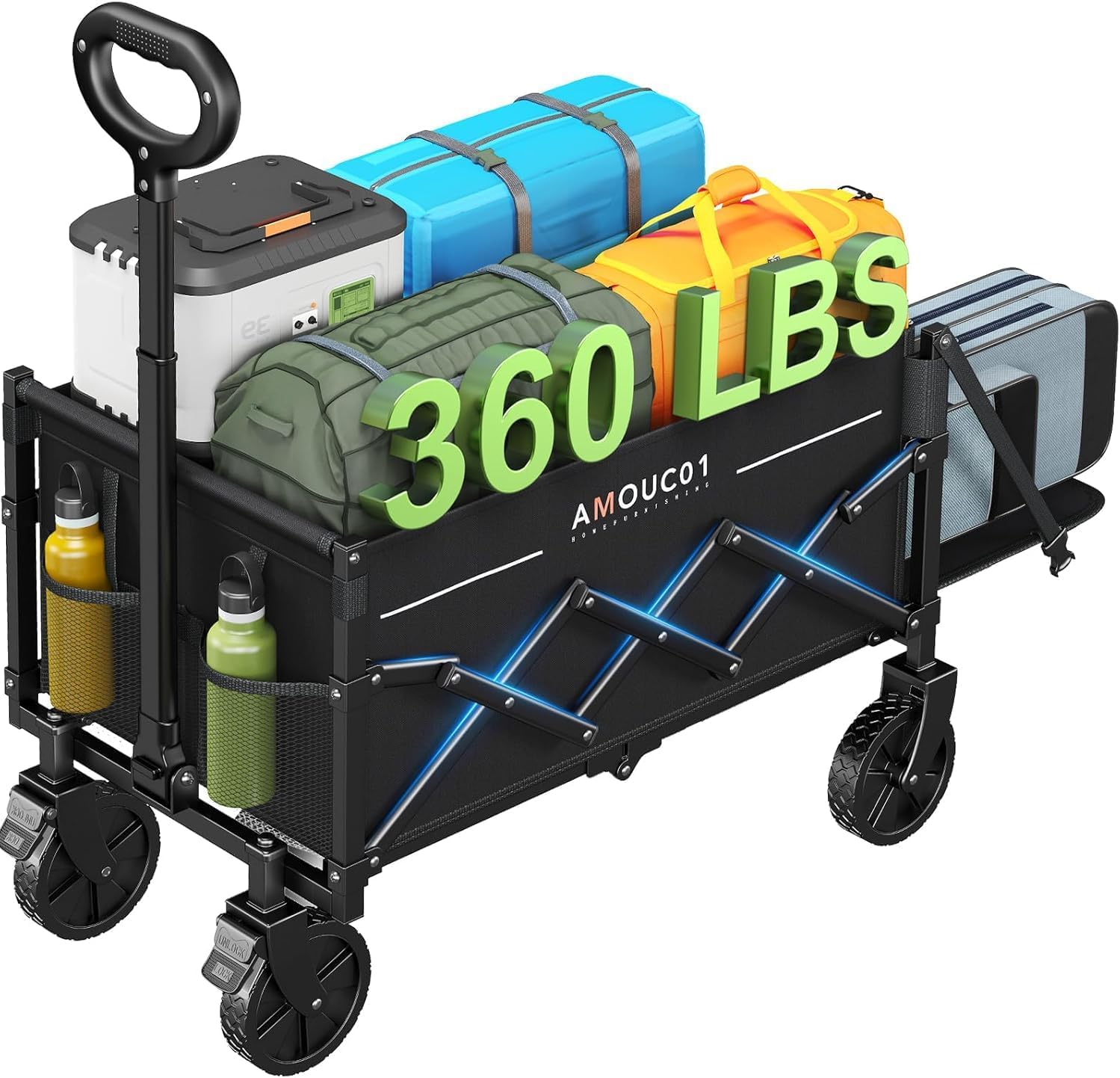 AMADA HOMEFURNISHING Klappbarer Handwagen 163 kg Tragkraft 90 L mit Getränkehaltern