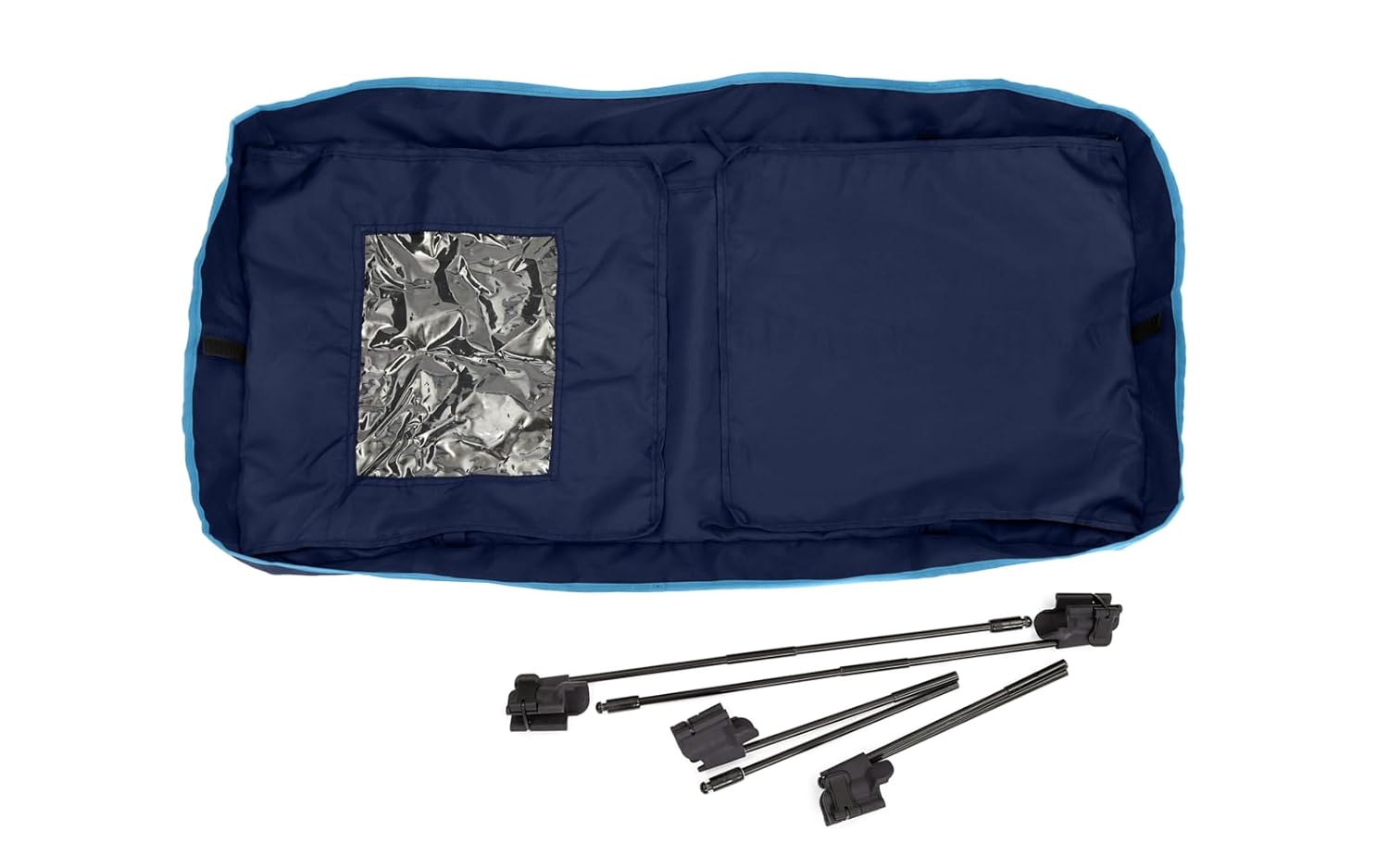 Besonders gut gelöst ist die Integration der Hochwertigen Stangen, die im Lieferumfang enthalten sind. Diese sind nicht nur stabil, sondern auch klappbar, was das Verstauen und den Transport erheblich vereinfacht. Die Stangen sorgen für eine großzügige Kopffreiheit, sodass auch größere Kinder bequem im Wagen sitzen oder liegen können, ohne den Kopf einzuziehen. Die Höhe des Daches ist so dimensioniert, dass ausreichend Platz zum Be- und Entladen von Gepäck bleibt – ein oft unterschätzter, aber entscheidender Vorteil im Alltagseinsatz.