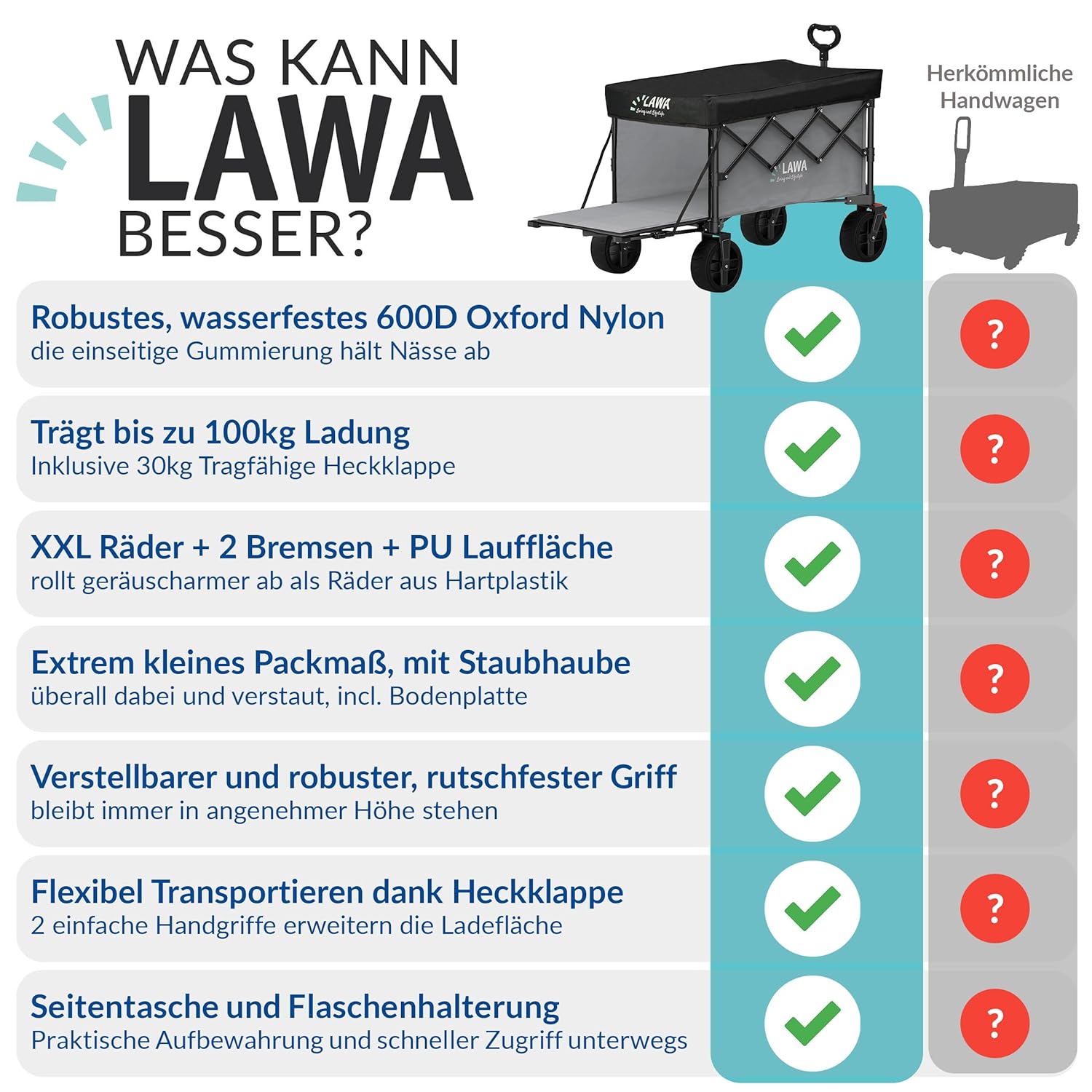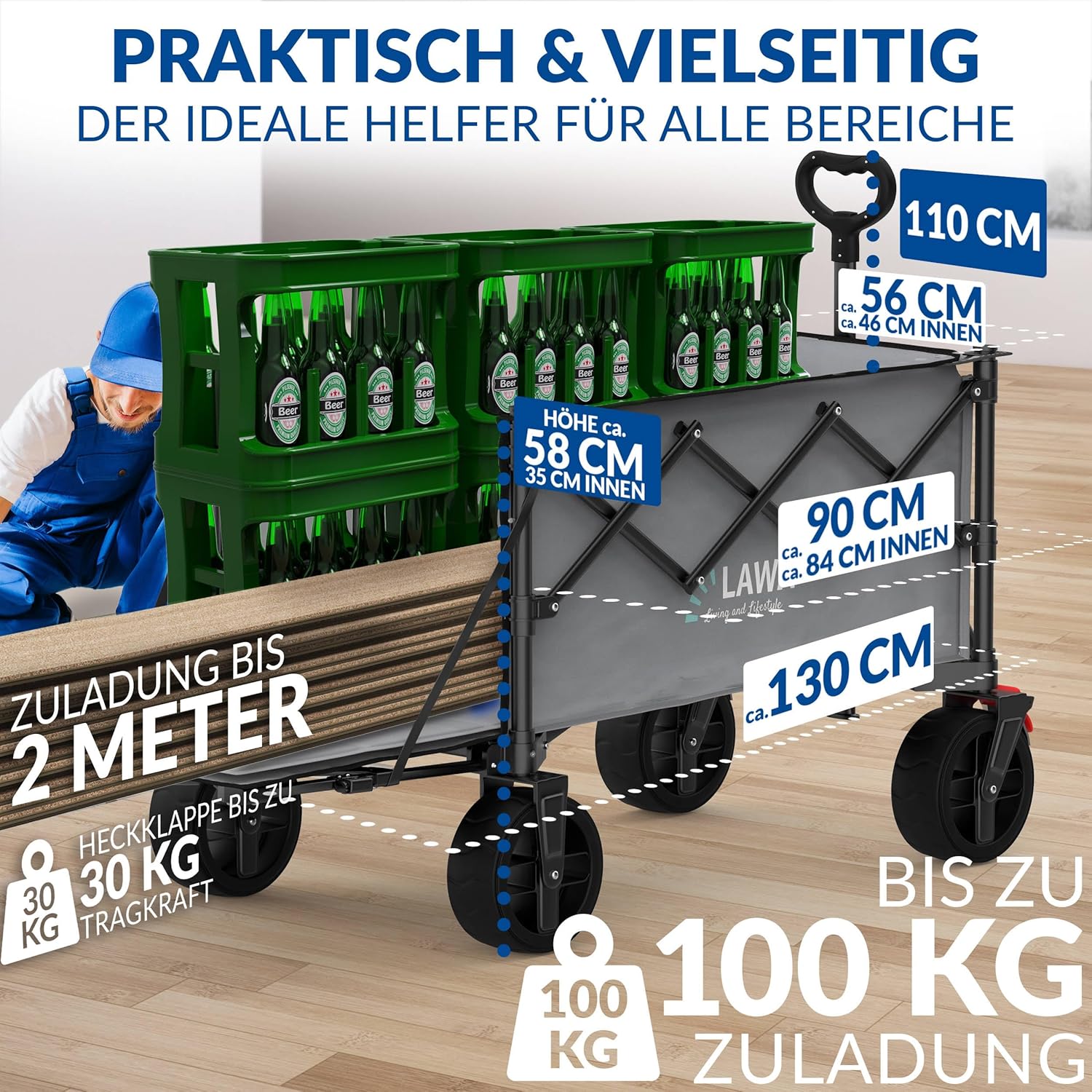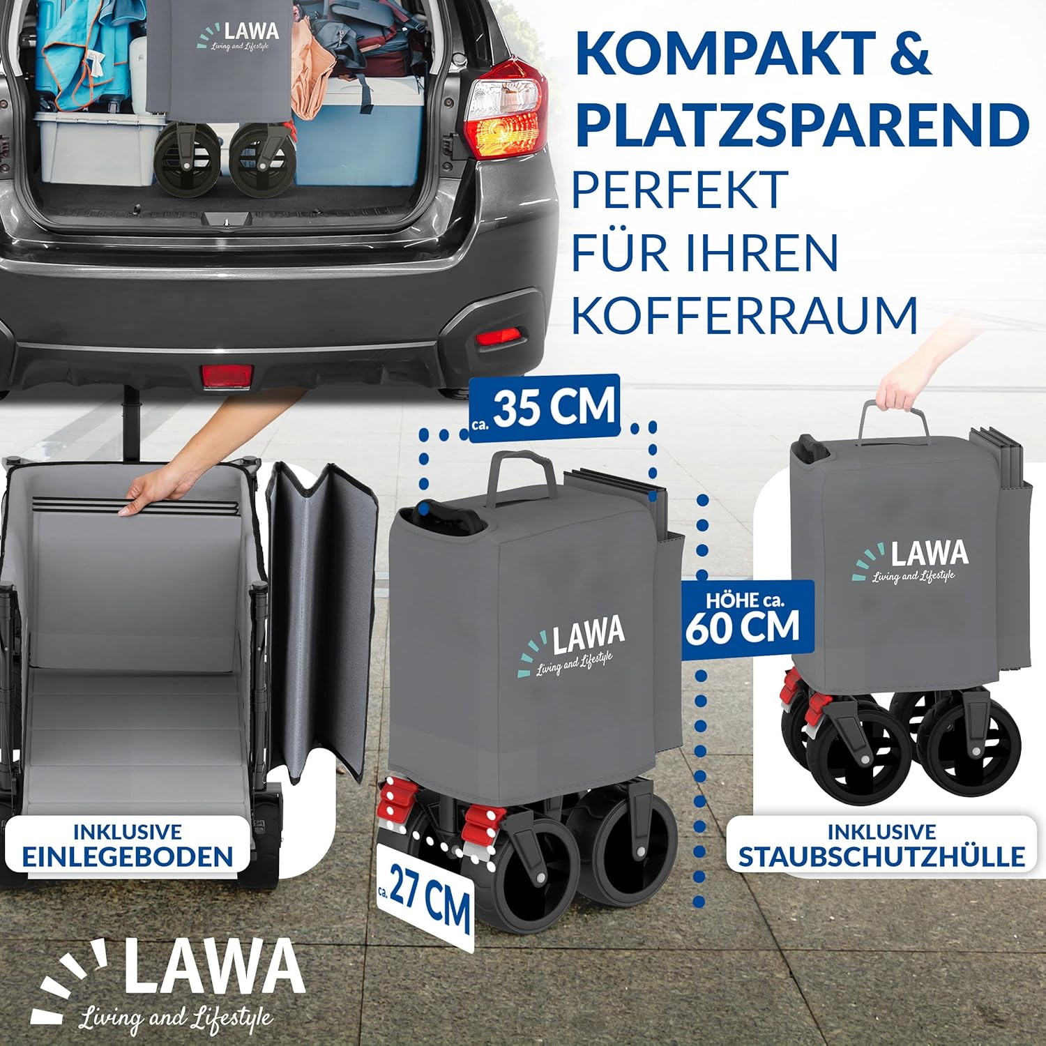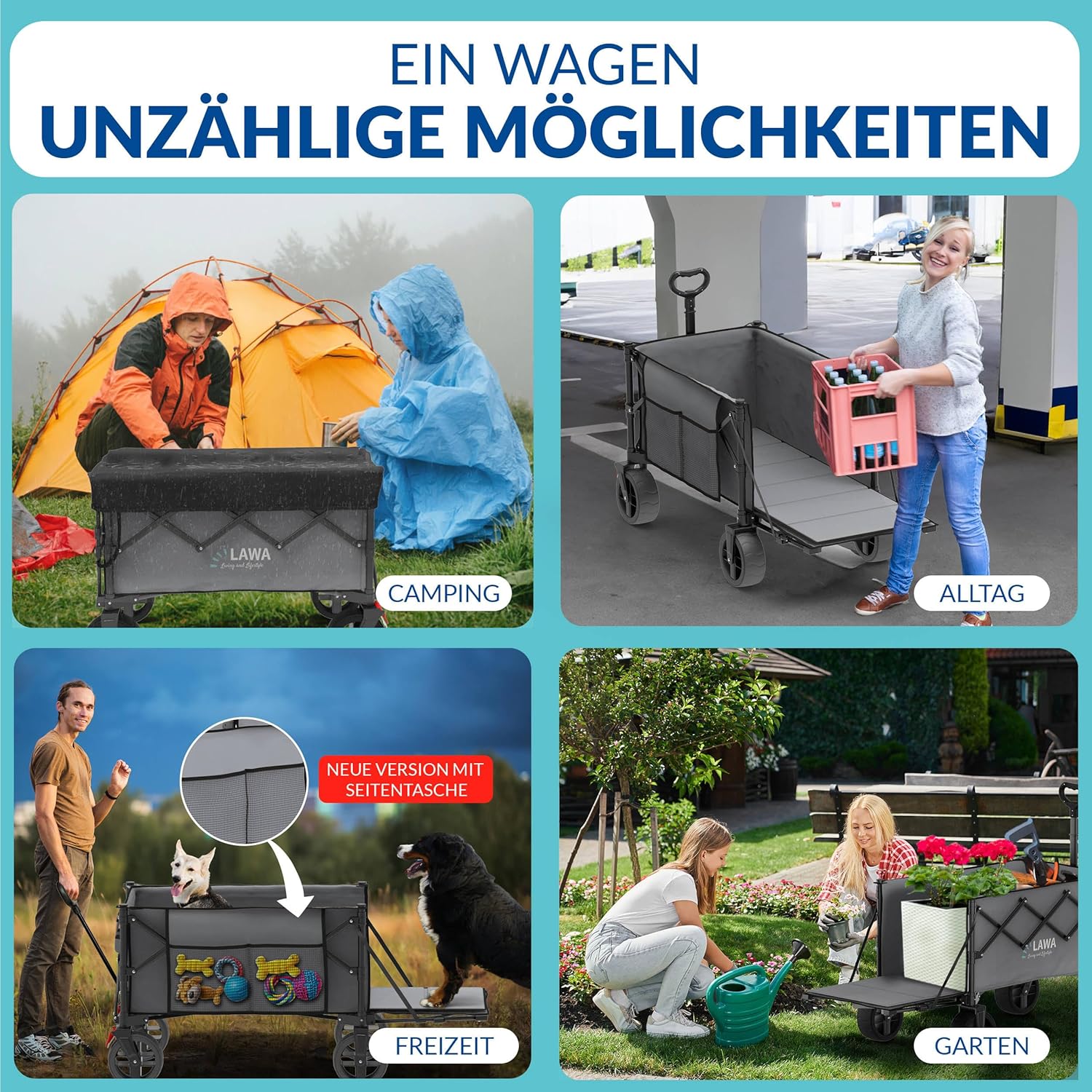 Entdecken Sie das neue Maß an Flexibilität und Komfort im mobilen Transport: Der faltbare Handwagen von LAWA Living and Lifestyle ist nicht einfach nur ein Transportroller – er ist ein clever durchdachtes Begleiterleben für aktive Familien, Outdoor-Enthusiasten und alle, die Wert auf Langlebigkeit, Sicherheit und stilvolle Funktionalität legen. Mit einer beeindruckenden Tragfähigkeit von bis zu 100 kg, einem großzügigen Laderaum von 130 Litern und einem intelligenten Faltmechanismus, der das Volumen um rund 30 % erweitert, setzt dieser Handwagen neue Maßstäbe in Sachen Alltagstauglichkeit und Abenteuerbereitschaft. Egal ob Sie Zelt, Strandutensilien, Einkäufe oder Gartenwerkzeug transportieren – dieses transportable Multitalent macht jede Herausforderung zum Kinderspiel.