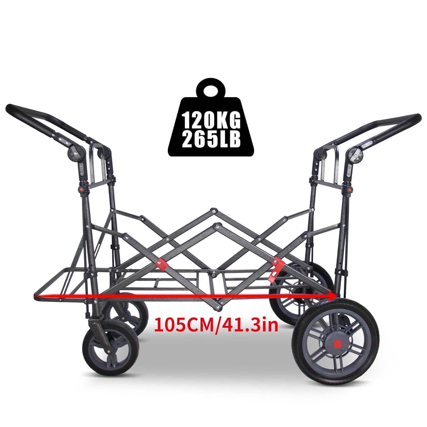 Besonders clever: Die Ladefläche ist auch als Sitzgelegenheit nutzbar – ideal für kurze Pausen im Garten, beim Picknick oder auf Reisen. Die Kombination aus großer Nutzfläche, hoher Tragfähigkeit und flexibler Erweiterung macht diesen Wagen zur optimalen Lösung für alle, die viel transportieren müssen – ohne Kompromisse bei Stabilität oder Komfort.
