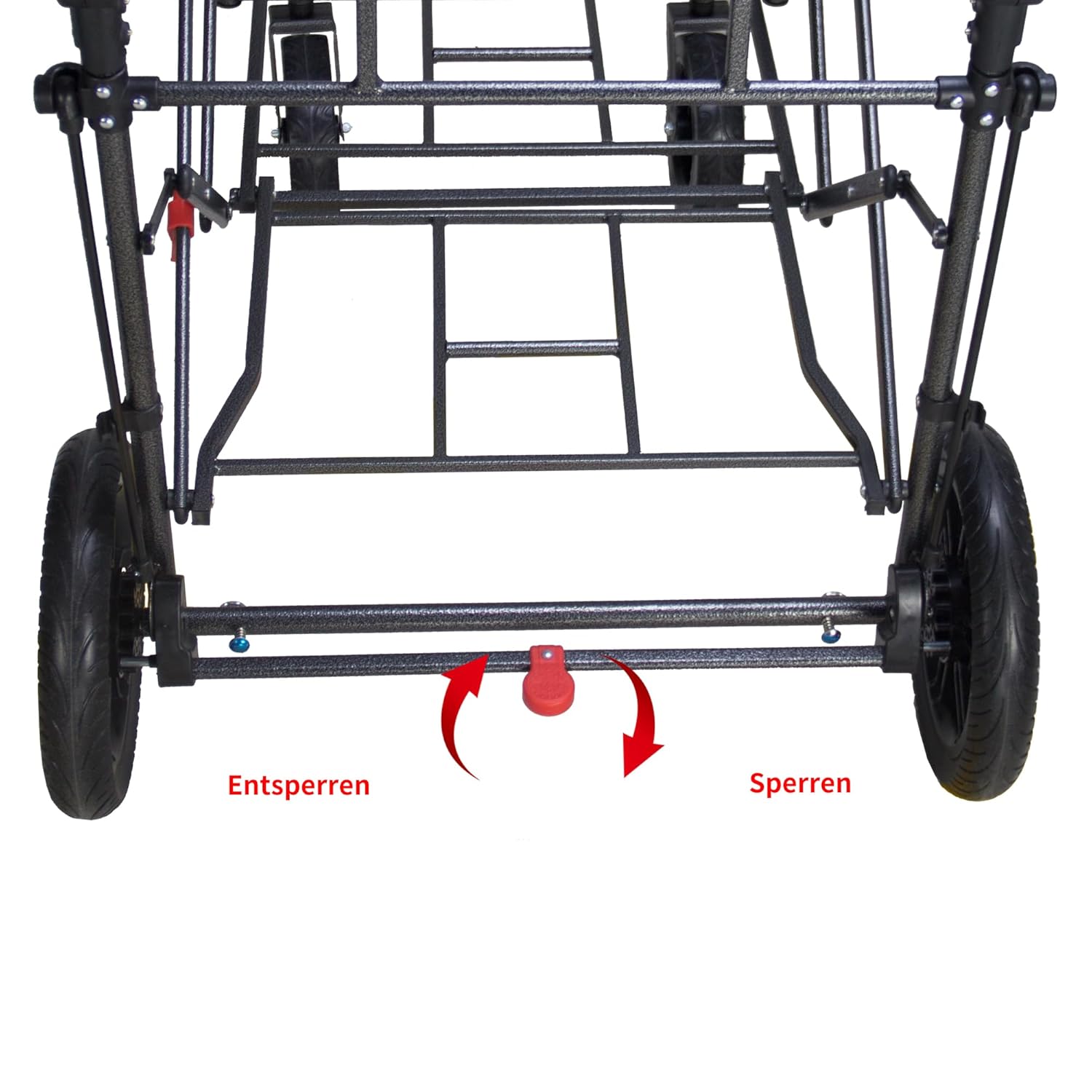 Die Mobilität des Wagens wird durch hochwertige PU-Vollgummireifen auf die nächste Ebene gehoben. Diese Reifen sind nicht nur pannensicher, sondern auch extrem langlebig und benötigen keine Nachfüllung oder Wartung. Ihre breite Lauffläche sorgt für optimale Traktion und verhindert das Einsinken in weichen Untergründen wie Sand, Schotter oder nassem Rasen.
