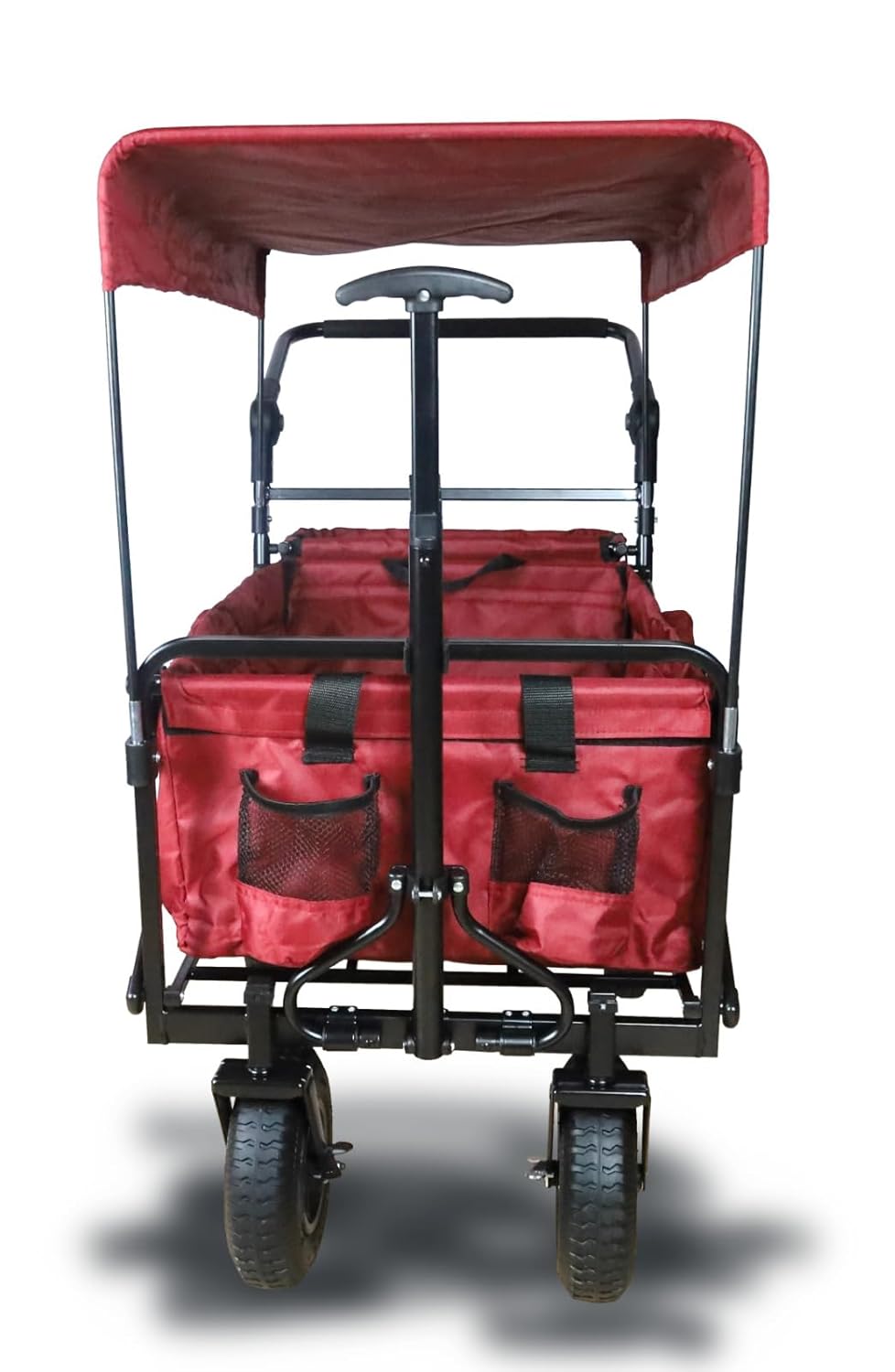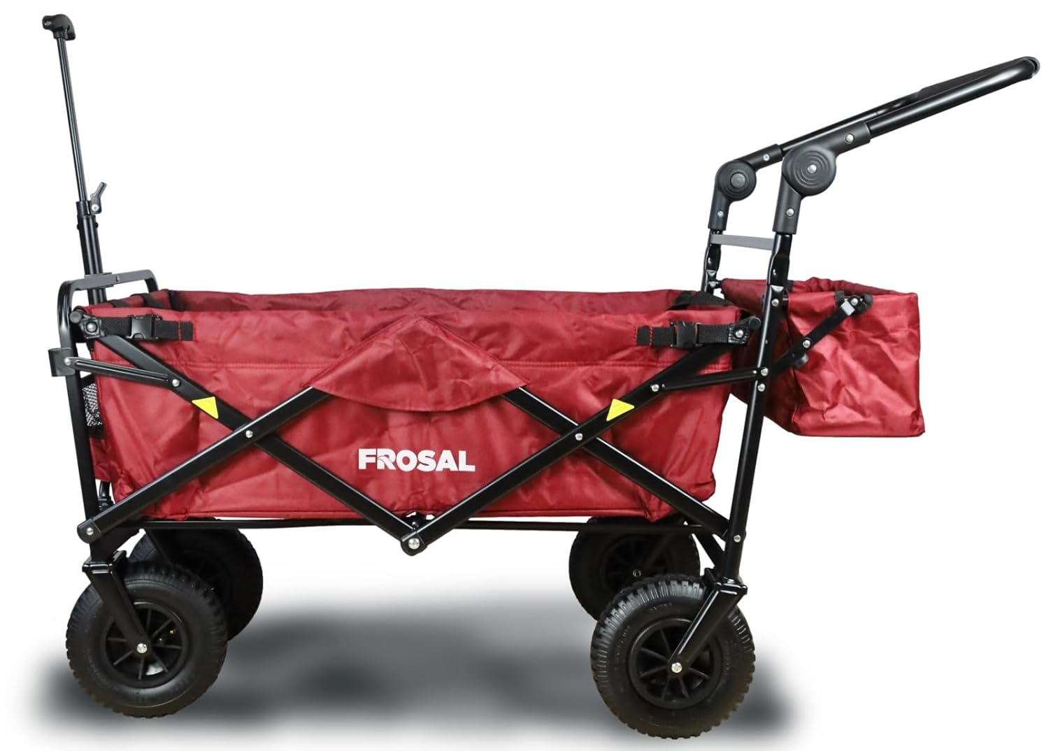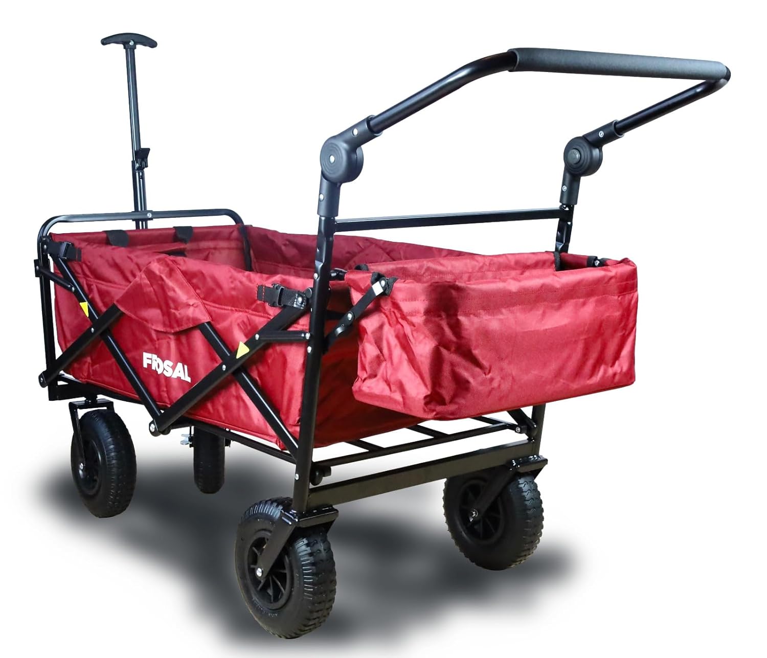 FROSAL Handcart Nick Pro – Der Premium-Kindertransporter für jede Abenteuerfahrt unter rotem Sonnendach