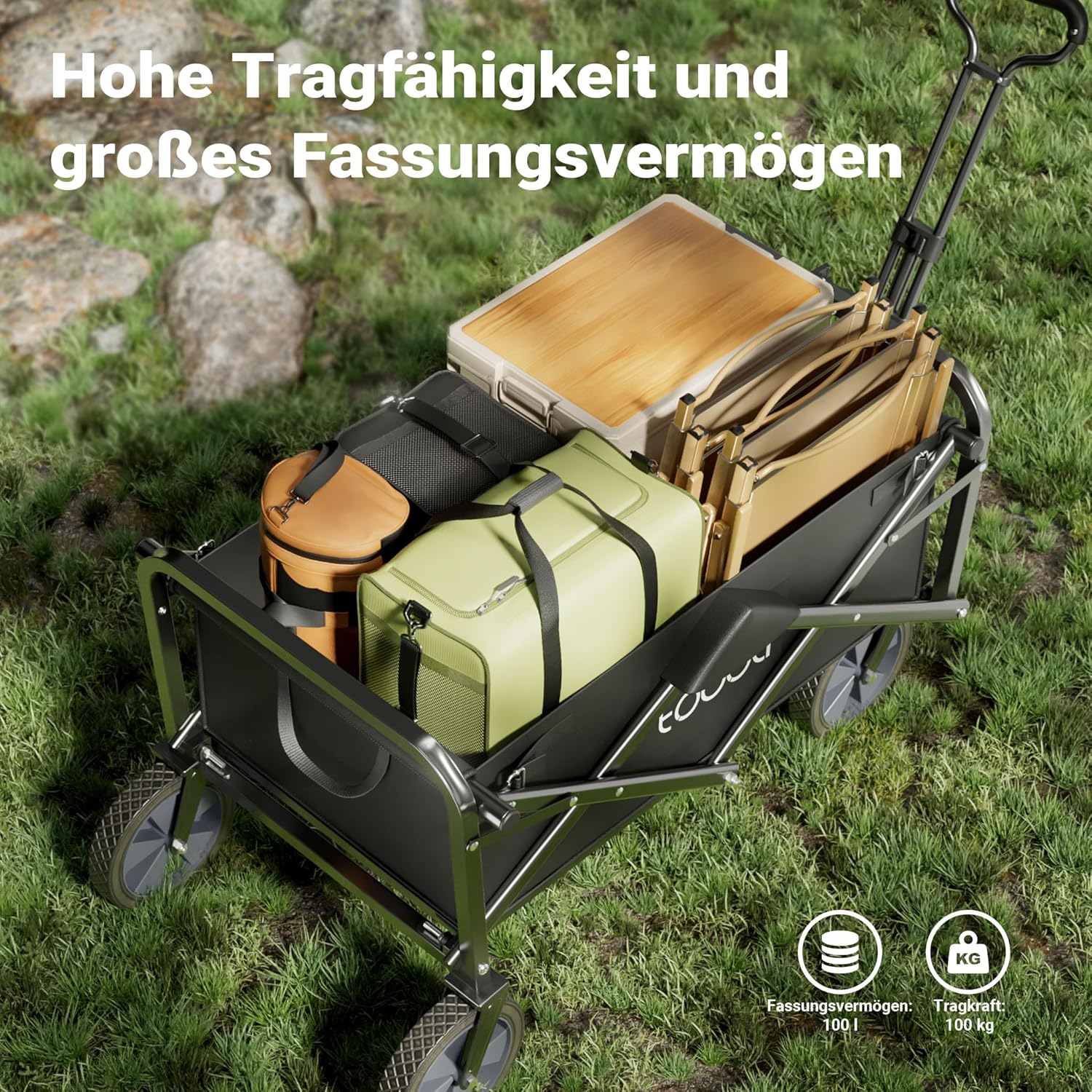 - Tragfähigkeit von bis zu 100 kg – ideal für schwere Einkäufe, Gartengeräte oder Reisegepäck