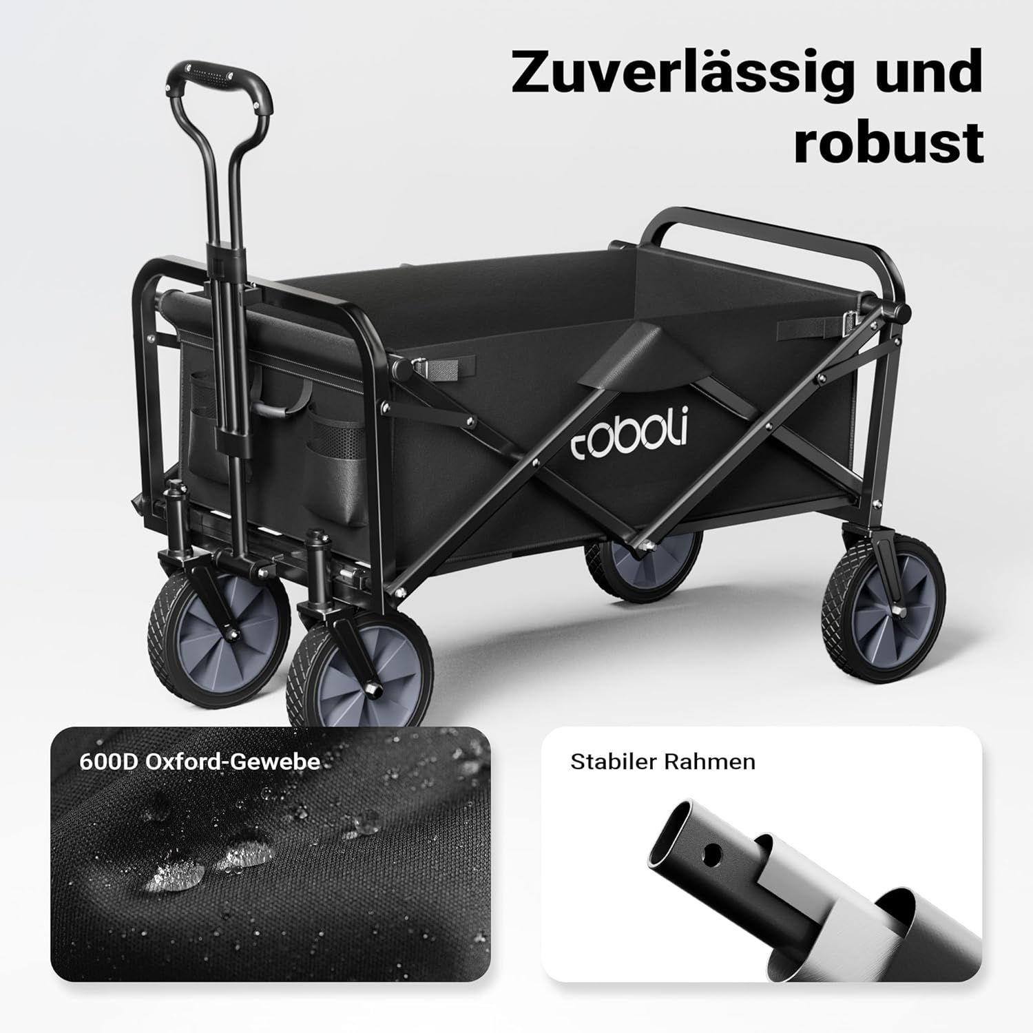 - Faltbarer Handwagen für maximalen Komfort und platzsparende Aufbewahrung
