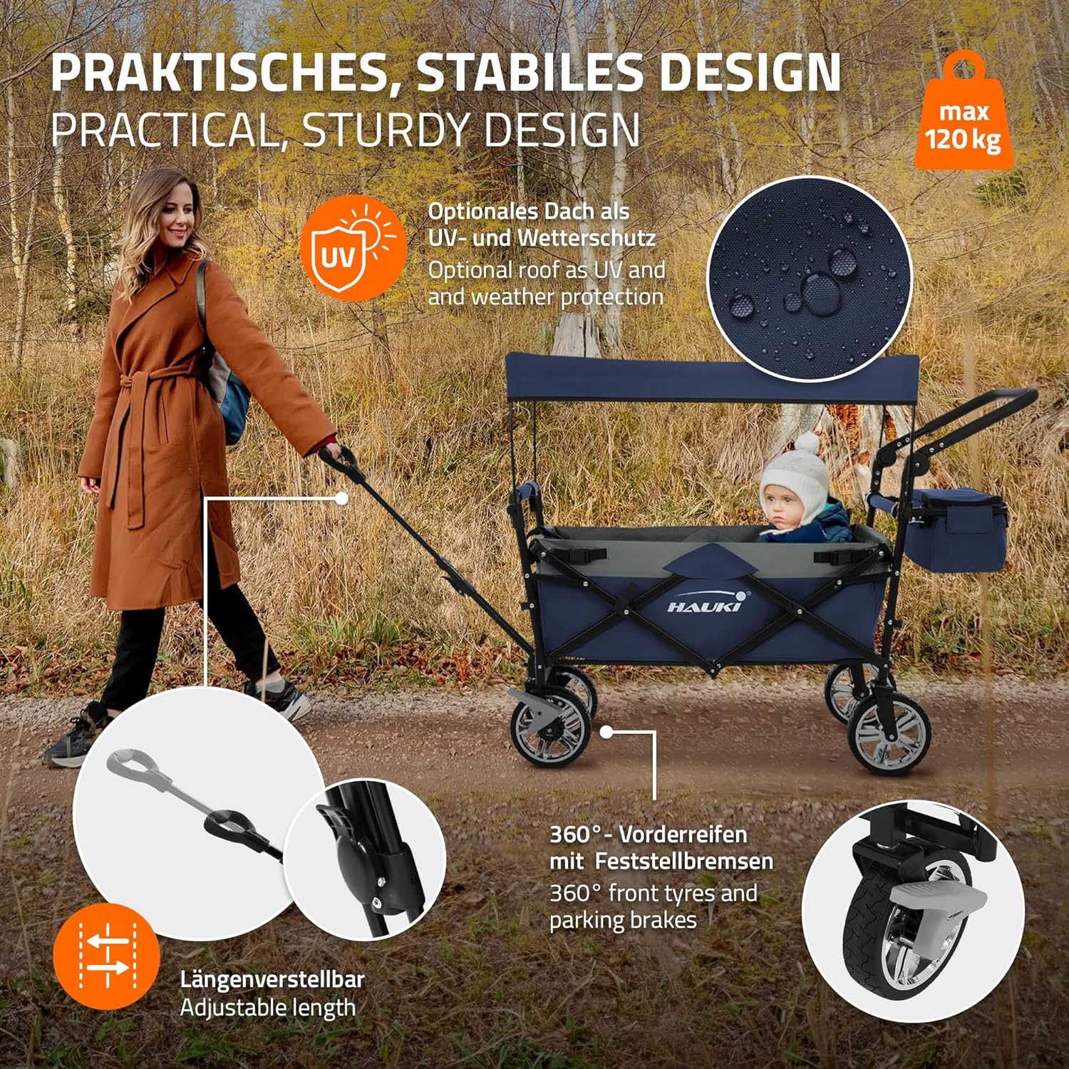 Entdecken Sie das neue Maß an Komfort, Sicherheit und Flexibilität im Outdoor- und Alltagsleben: die Hauki XXL Klapprutsche mit Dach & Tasche. Dieses außergewöhnliche Transportmittel ist mehr als nur ein Kinderwagen oder eine einfache Schubkarre – es ist ein vielseitiges, clever durchdachtes System, das sich nahtlos in jedes Lebensszenario einfügt. Ob Sie einen ausgedehnten Familienausflug zum See planen, den Wochenendeinkauf erledigen, das Fahrrad zum Campingplatz bringen oder Ihre Kinder sicher und bequem durch den Park chauffieren möchten – die Hauki Klapprutsche wird zum unverzichtbaren Begleiter.