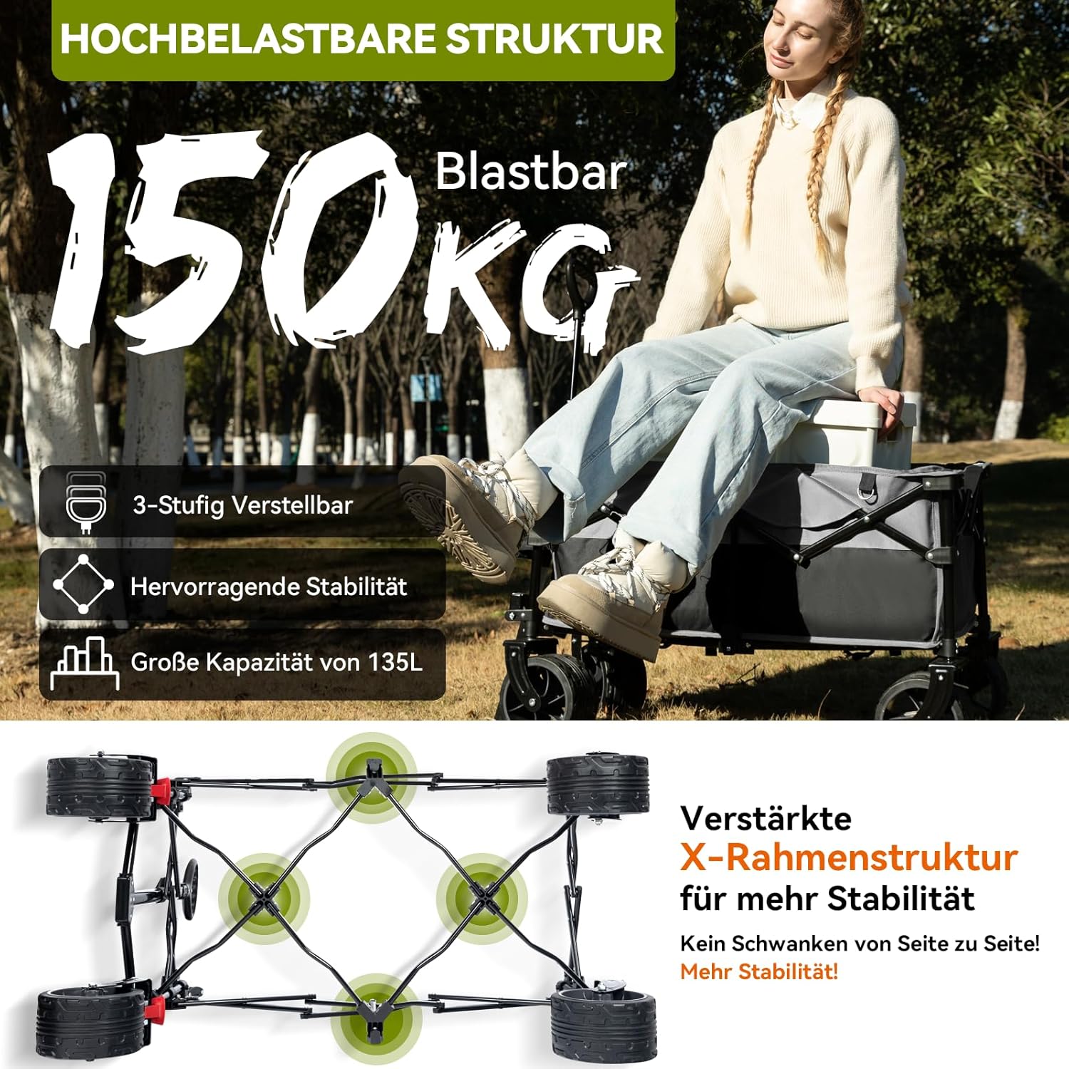 HIKENTURE Handcart Foldable 135 L – Der zuverlässige Begleiter für Familie, Freizeit und Alltag
