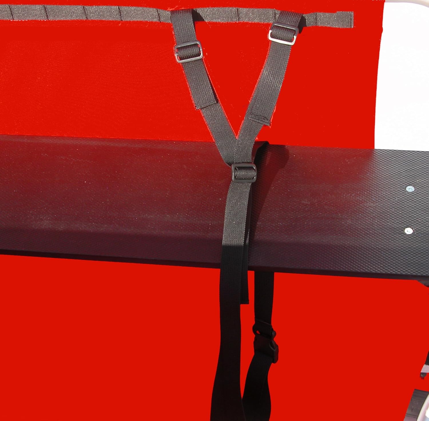 Trotz seiner hochwertigen Ausstattung überzeugt der Safety Belt durch sein geringes Packmaß von nur 2 x 3 x 12 cm. Er lässt sich problemlos im integrierten Fach des Rambler Explorer Wagon verstauen oder in einer Tasche mitführen. Die Montage erfolgt werkzeuglos und in Sekundenschnelle – die Befestigungspunkte am Sitz und der Rückenlehne des Wagens sind präzise positioniert, sodass der Gurt perfekt einrastet.