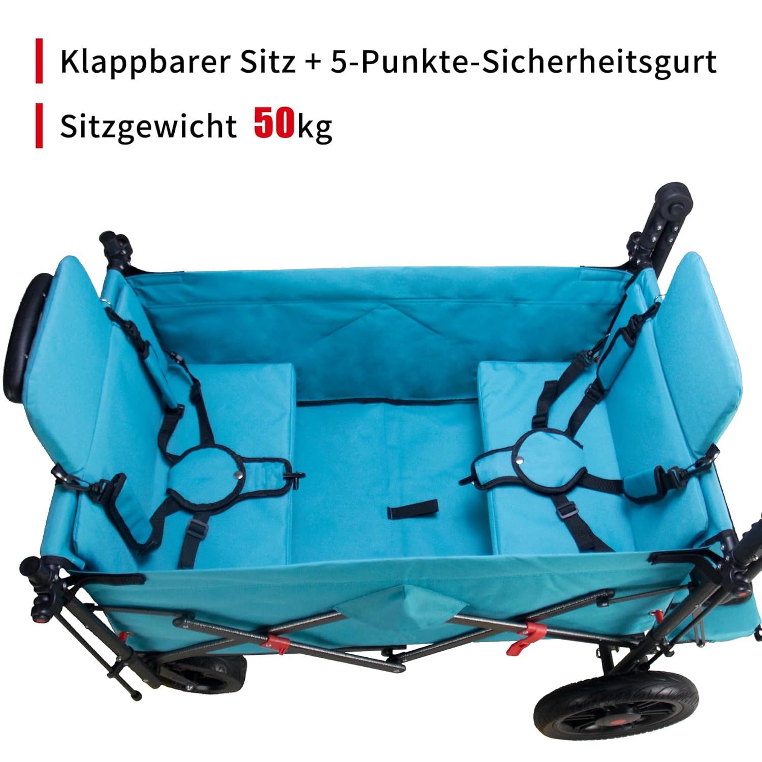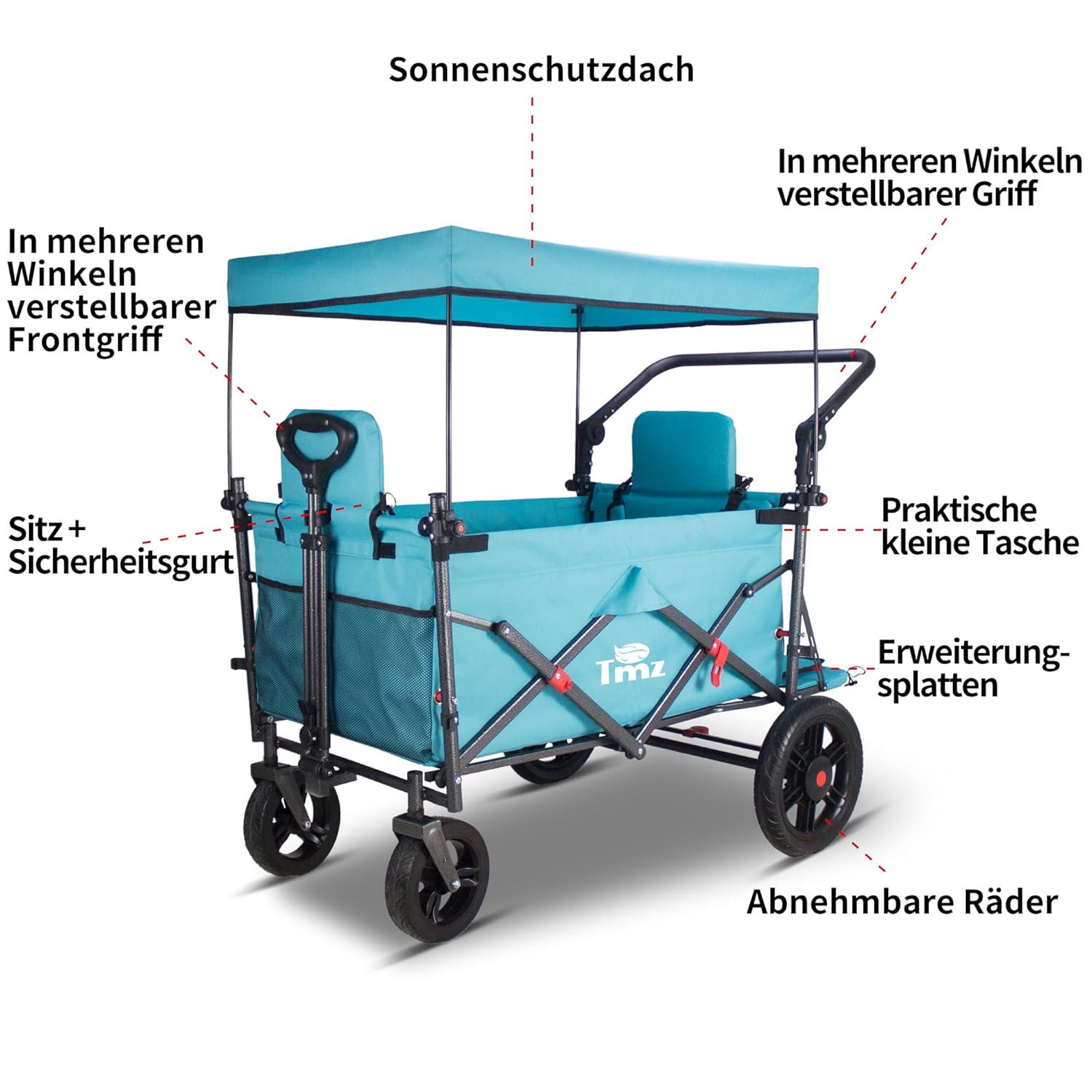 TMZ Klappbarer Handwagen mit Dach, 120 kg Tragfähigkeit, Fußbremse, Allterrain